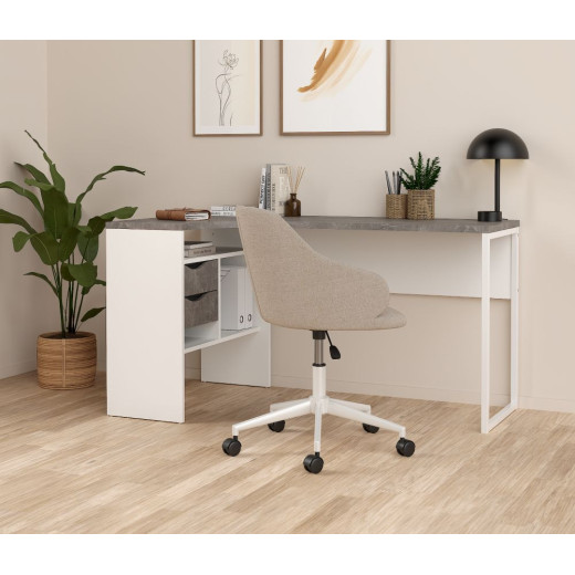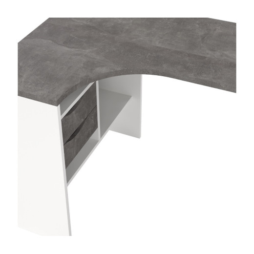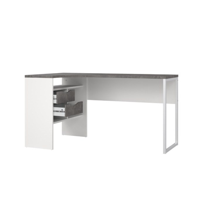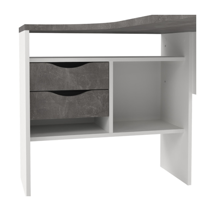 Mesa de estudio en rincón en blanco combinado con roble, oxido o trufa y rnegro combinado con roble.