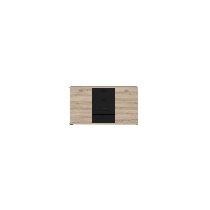 Aparador con 2 puertas y 4 cajones en color comano y negro mate. Medidas: 149,5 x 41,4 x 84,3 cm. alto.