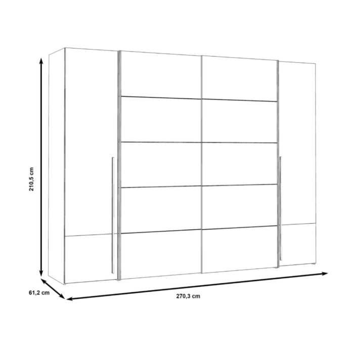 Armario 4 puertas disponible en roble o blanco. Medidas: 270,3 x 61,2 x 210 cm alto.