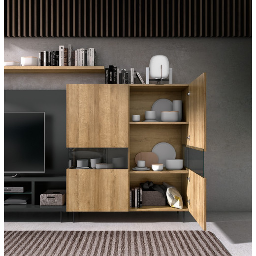 Composición de salón acabada en color oslo y antracita. Medidas: 270 x 46 x 180 cm. alto.