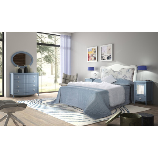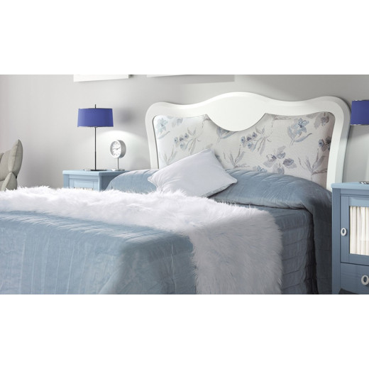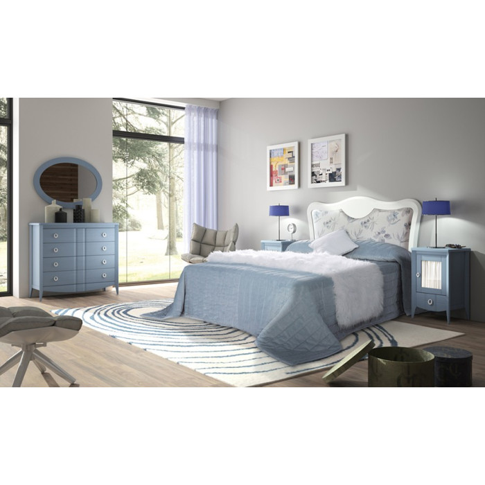 Da un estilo romántico y clásico a tu dormitorio de matrimonio con el cabecero de cama Porto Alegre. Con marco madera en color cobalto y plafón tapizado en tela estampada sobre fondo blanco. Cabecero combinable con la mesilla de noche y la cómoda a juego, para que amuebles del todo tu dormitorio moderno, con un toque clásico y tradicional. Para cama tanto de 135 como de 150 cm.
