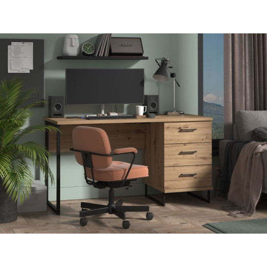 El escritorio SINDY cuenta con 3 cajones para ayudar a la organización de la habitación. Es una pieza de estilo moderno con un toque industrial, por la combinación de su acabado en roble artisan y negro.