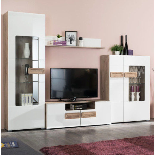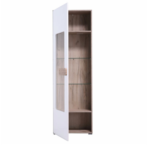 Vitrina alta en laminado combinado roble sade y blanco brillo. Medida: 60 x 35 x 190 cm de alto.