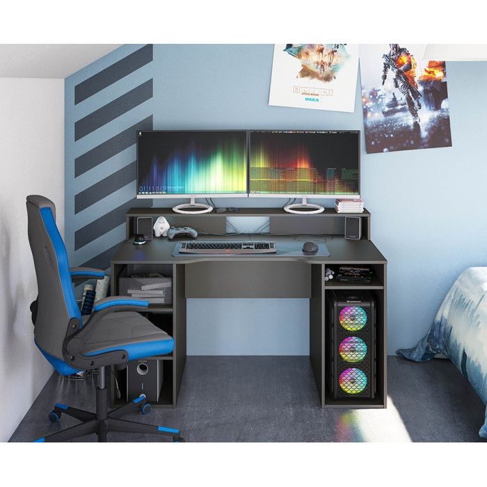Mesa gamer de trabajo o estudio en color gris antracita. Medidas: 136 x 67 x 88 cm alto.