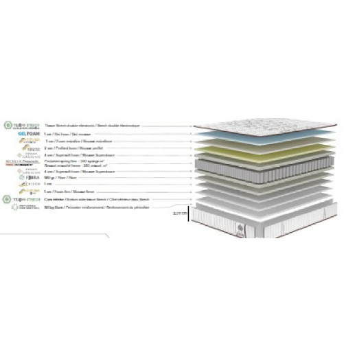 Colchón con muelle ensacado, viscoelástica y gel, disponible en varios tamaños. Medidas: 90/135/150 x 190de largo y 32 cm de altura.