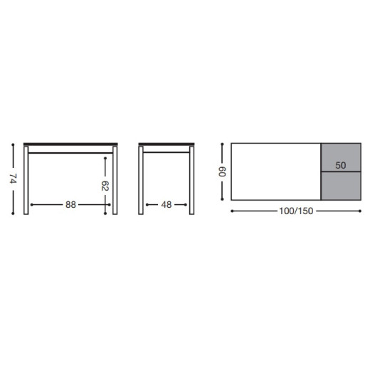 Mesa de cocina extensible con un lateral extensible de carro. patas de aluminio y tapa en color Amundsen o Cervino Medidas: 60 x 100/150 x 74 cm. de alto.