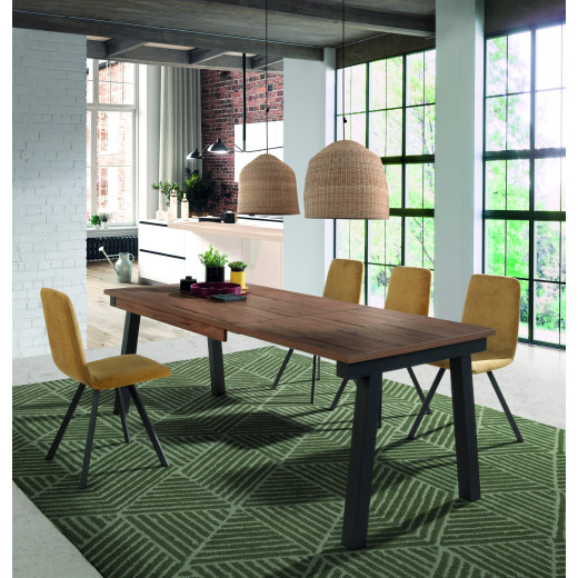 Silla de comedor tapizada color mostaza patas metálicas color negro. Medidas: 40 X 44 X 98 cm alto.