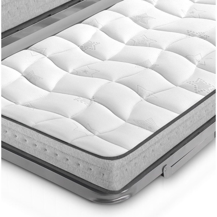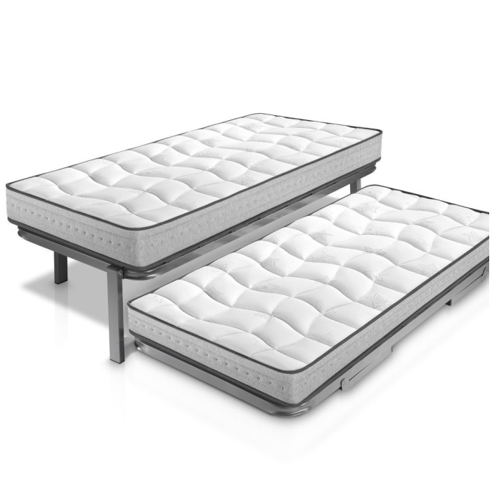 La colchoneta PARMA de HR, con su núcleo de ErgoForm y Visco, es garantía de adaptabilidad y buen descanso. Además, ofrece la modalidad de colchón, con 4 cm mas altura, lo cual lo convierte en el complemento perfecto para el somier doble Kanguro.