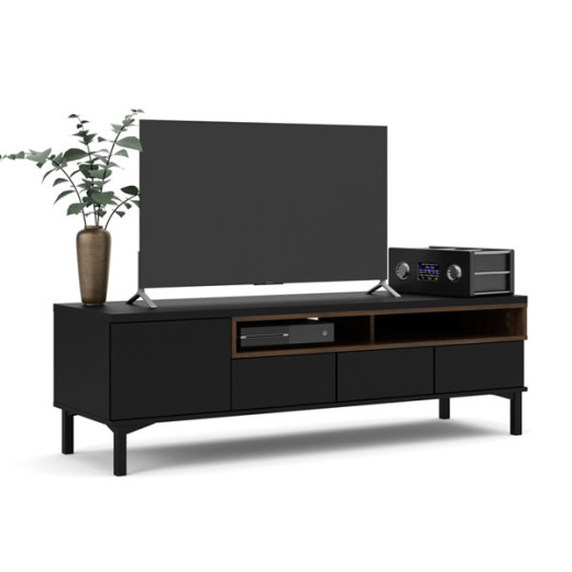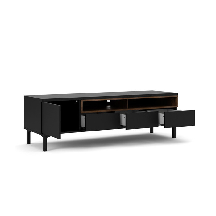 El mueble de TV REMO además de colocar la TV, podrás guardar todo aquello que necesites con su gran capacidad de almacenamiento. Consta de una puerta, tres cajones y dos huecos para un total aprovechamiento del espacio. En dos colores disponibles, combina con todos los estilos de decoración por su diseño atemporal.