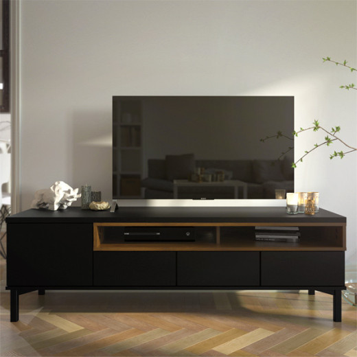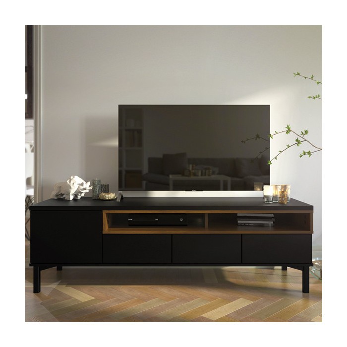 Mueble TV, 3 cajones, 1 puerta y 2 huecos.