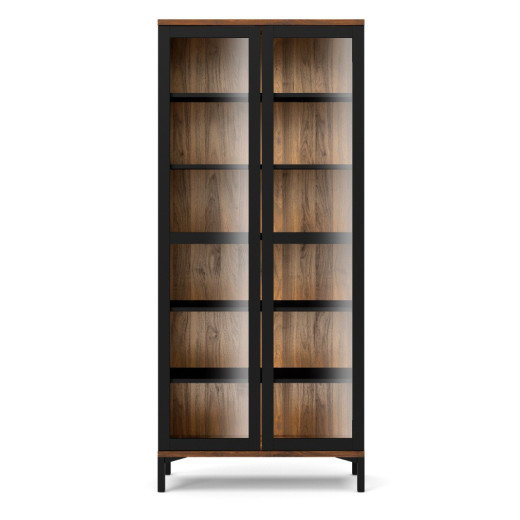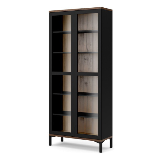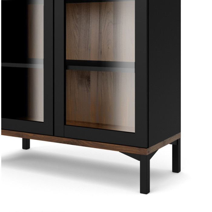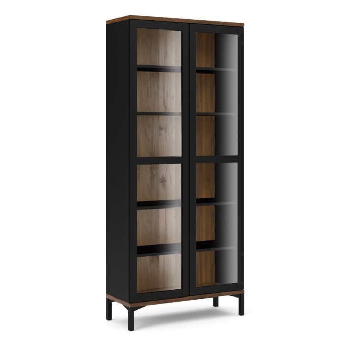 Vitrina 2 puertas enmarcadas acabada en color negro y nogal o blanco y roble patinado.