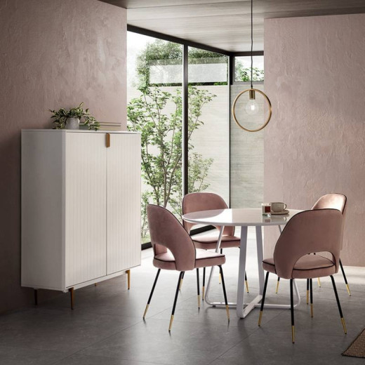 - Patas metal negro rematadas en color oro.