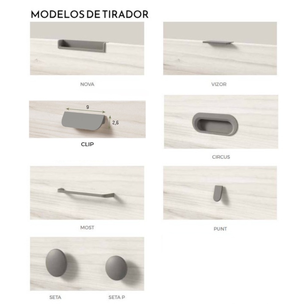 - Guías metálicas en cajones con sistema de auto cierre opcional.