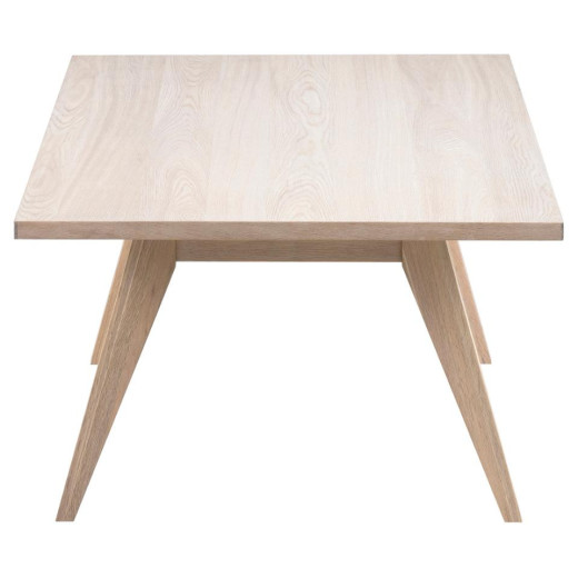 Mesa de centro rectangular, tapa chapa de roble aceitado pigmentado blanco, base cuadrada roble aceitado pigmentado blanco.