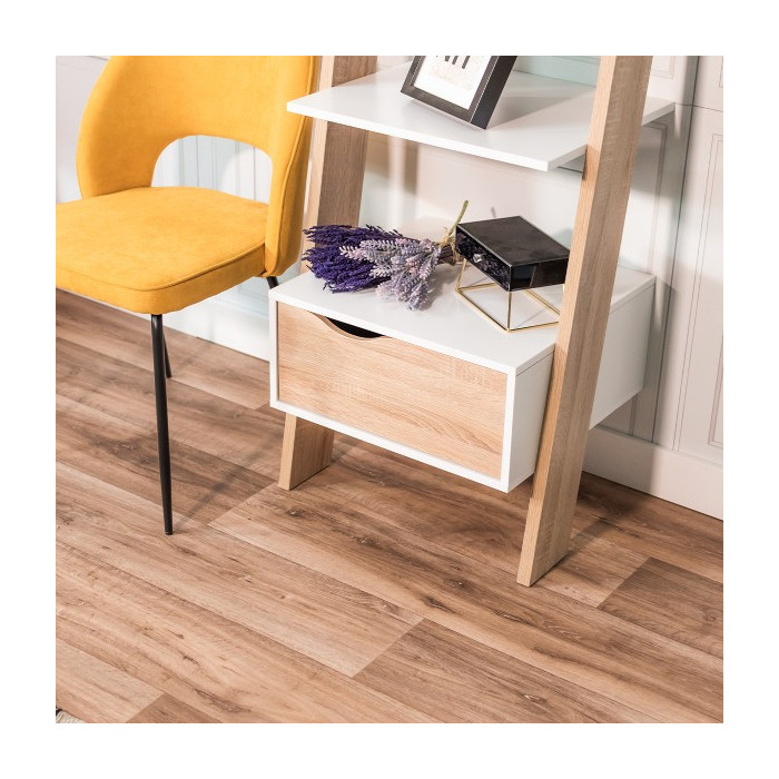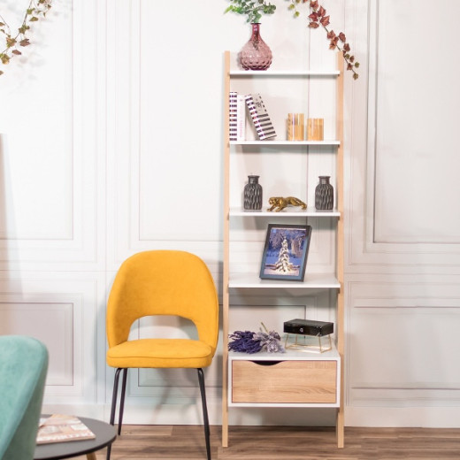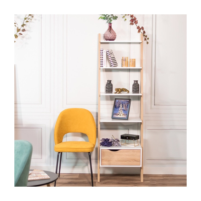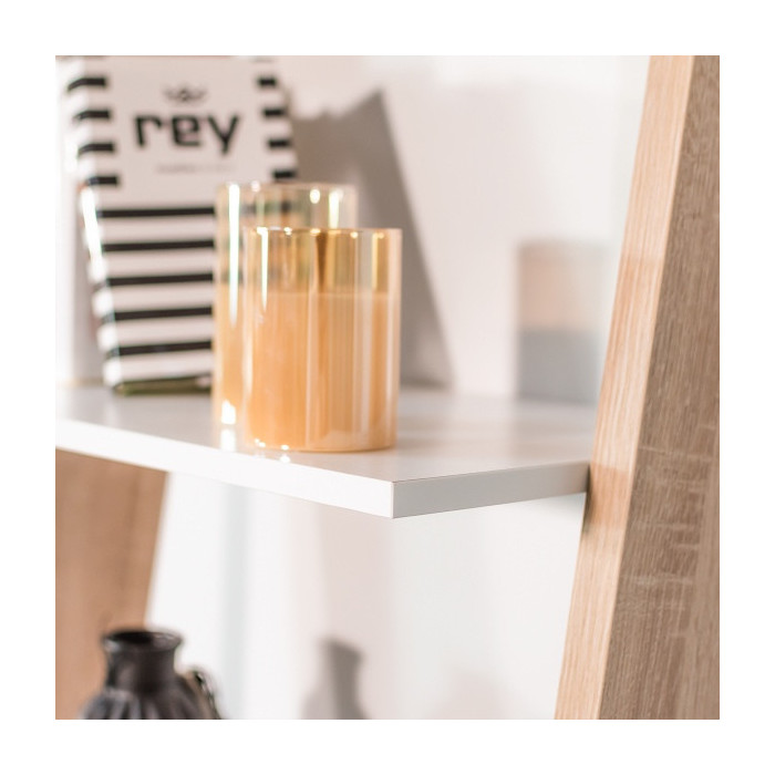 La estantería de pie en escalera DELTA forma parte de una colección de piezas auxiliares que dará a tu salón una personalidad propia y diferente. La estantería tiene un cajón inferior para almacenamiento y cuatro estantes (5 huecos) para colocar todos tus libros o tu decoración. La colección DELTA formará parte de tu salón o estancia para darle un aire nórdico.