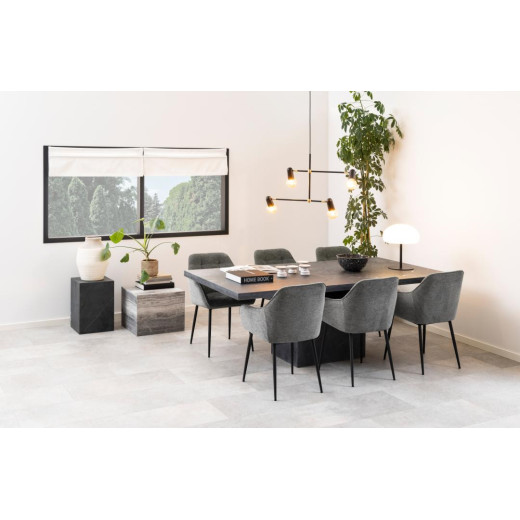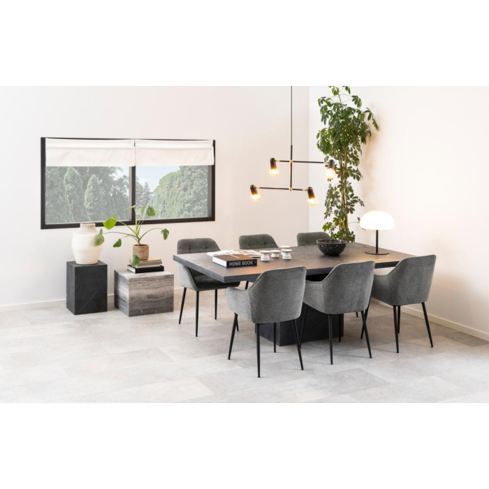 Silla de comedor CLEMENS. Silueta atemporal tapizada en tela de terciopelo suave, adecuado para cenas largas, el detalle de capitoné agrega textura.
