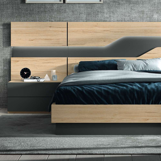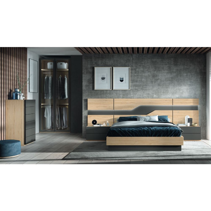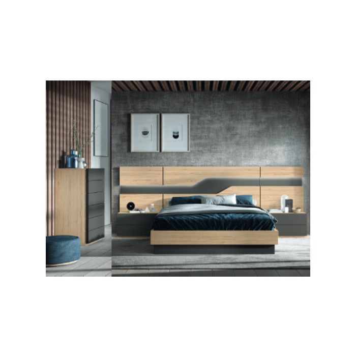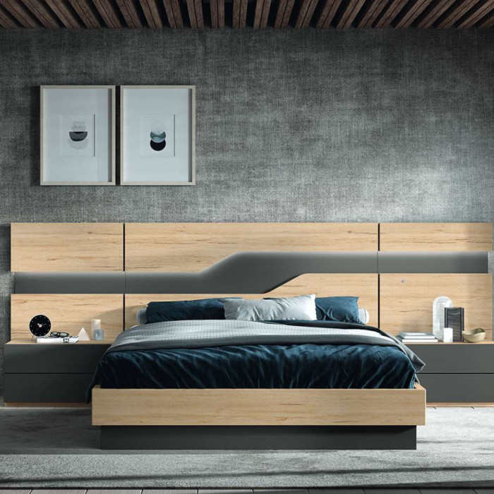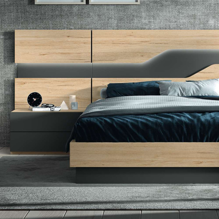 - El cabecero o la cama en la medida elegida y dos mesillas con dos cajones.