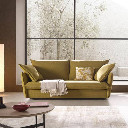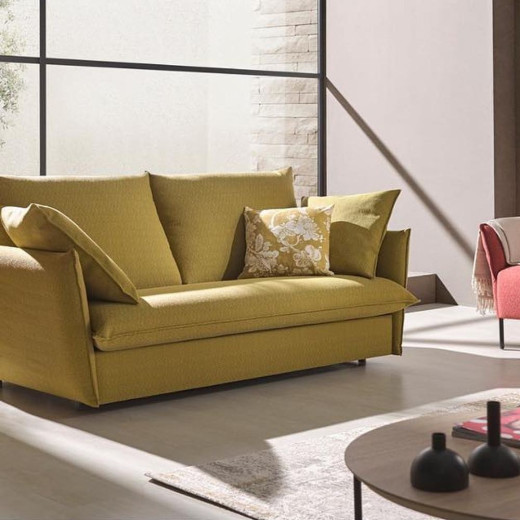 LUNA es un lujoso sofá cama con mecanismo de apertura italiana muy fácil de abrir y cerrar.