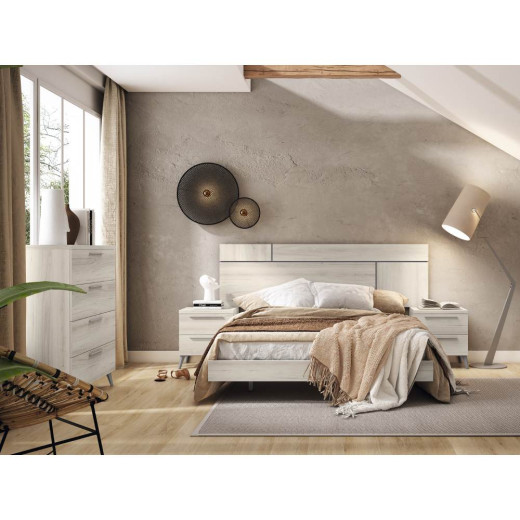 Dormitorio compuesto por un cabecero galería con dos mesillas a juego. Acabado en color Shamal.