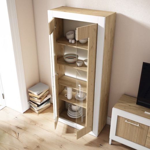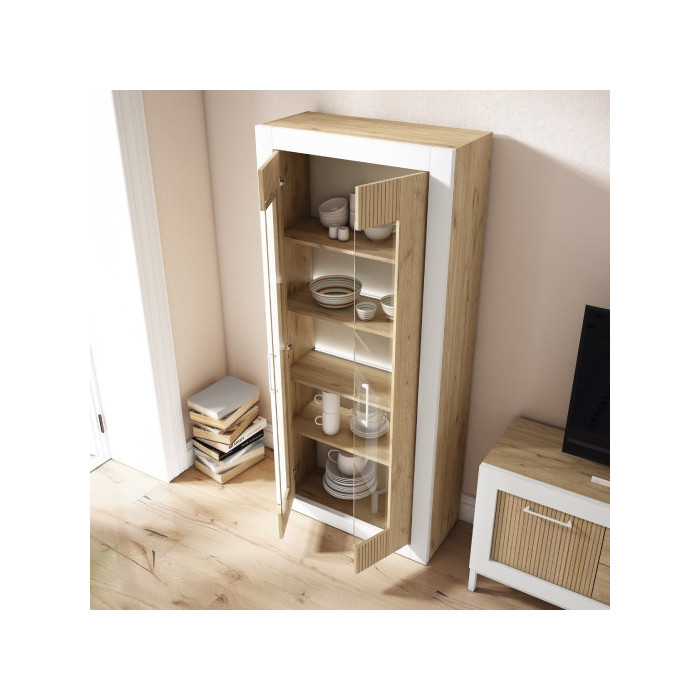 Acabado en color Naturale combinado con blanco mate y naturale rayado.
