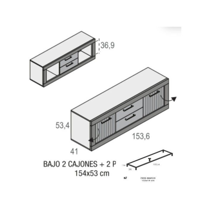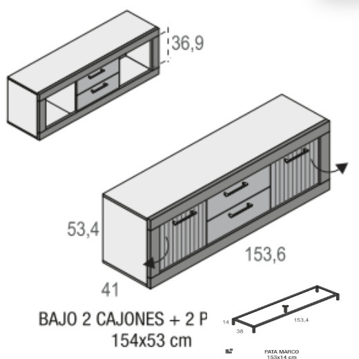 - Bajo TV: 153,6 x 41 x 67,4 cm. alto.