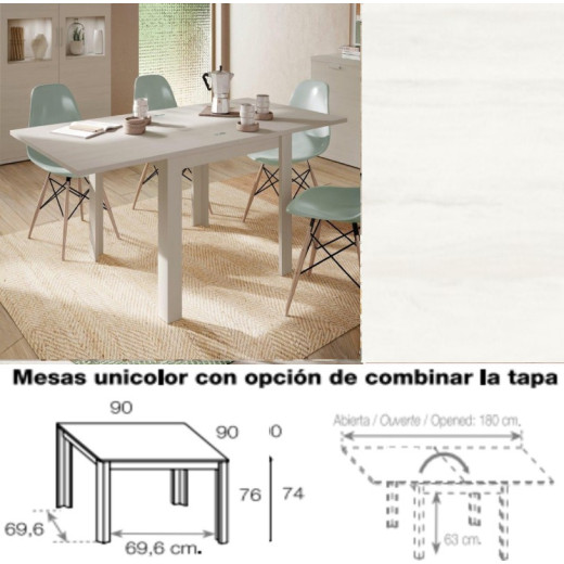 Os ofrecemos cuatro opciones de mesa de comedor extensible, en tres colores, para combinar estructuras y tapas, decide tu como quieres que sea tu mesa..