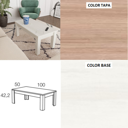 - Rectangular elevable: 100 x 50 x 42,2/57,3 cm de alto.