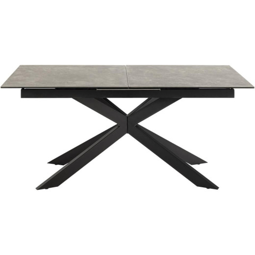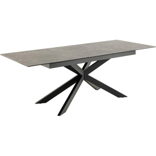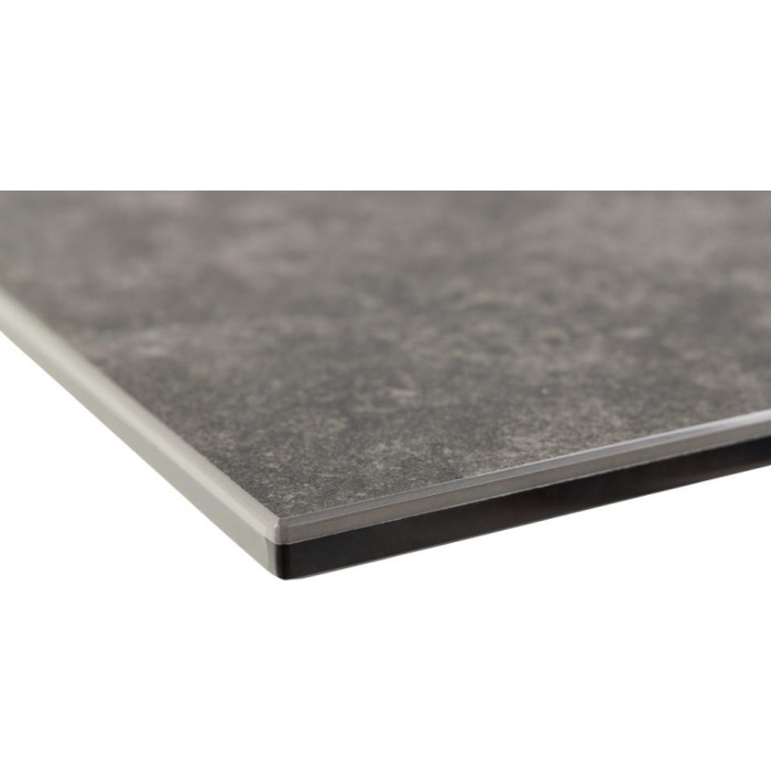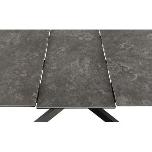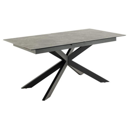Mesa extensible rectangular efecto cerámica rugosa en color gris.