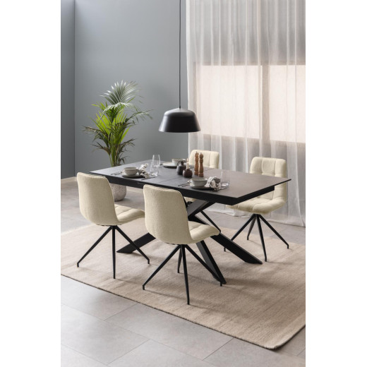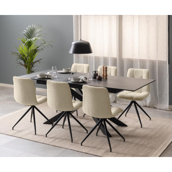 La mesa extensible ARNE tiene un estilo muy moderno con líneas elegantes y depuradas. Su tablero simula la cerámica rugosa. Incorpora una extensión que aparece en el medio simplemente tirando de cada extremo.