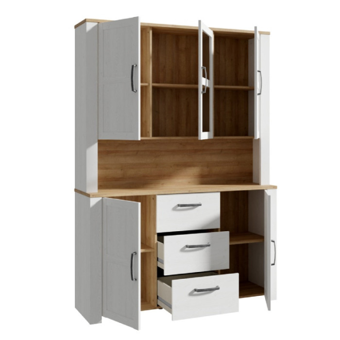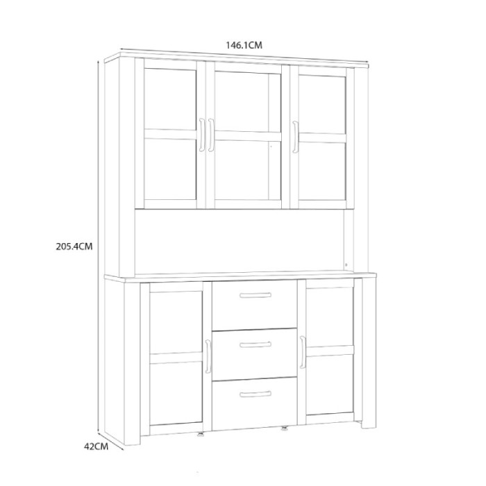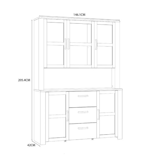 -En la parte inferior: 2 puertas, 3 cajones, un aparador.