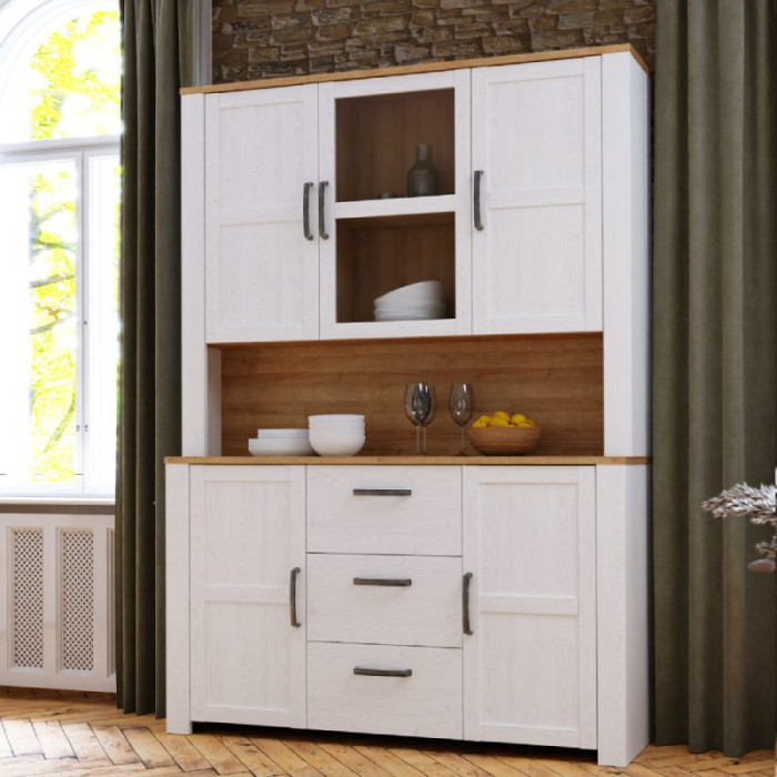 La alacena alta BRISA WHITE te cautivará por su estilo único y su gran capacidad de almacenaje. Compuesta por: