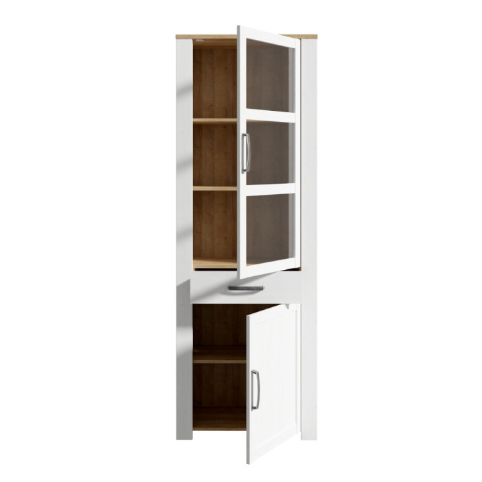 Vitrina alta acabada en color Blanco Silver combinado con Roble Riviera. Iluminación leds opcional.
