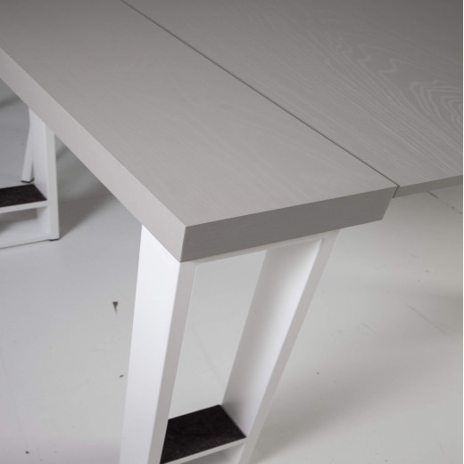Con la mesa de consola JUMBO y sus cuatro tableros recogidos en su parte trasera, podrás convertir una consola de recibidor en mesa de comedor con uno, dos, tres o cuatro tableros para alcanzar progresivamente hasta 245 cm de largura.