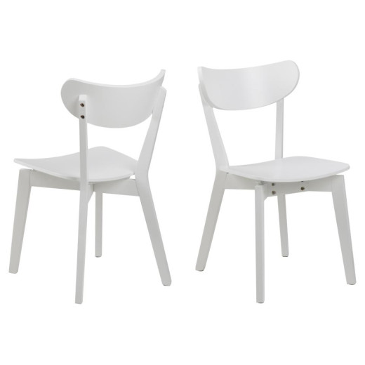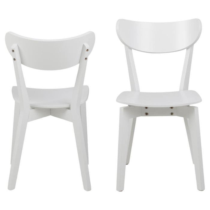 Pack de 2 sillas de comedor, chapa de roble lacado AC blanco mate, patas rectangulares de madera de caucho lacado AC blanco mate.