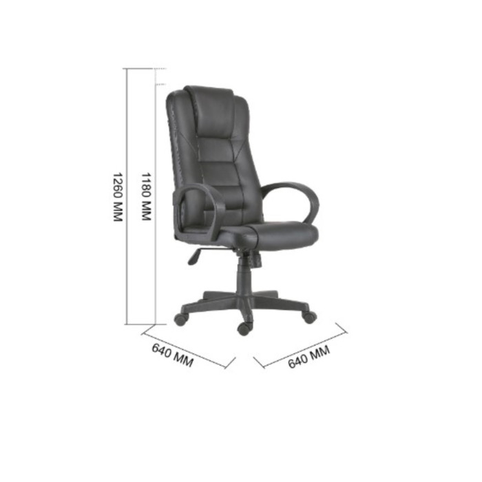 Sillón de despacho giratorio con mecanismo basculante regulable en altura en colores blanco o negro.