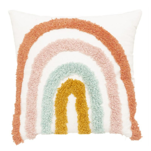 Cojín infantil con relieve en algodón rizo, formando un arcoiris en tonos empolvados. El complemento ideal para una habitación infantil o juvenil.