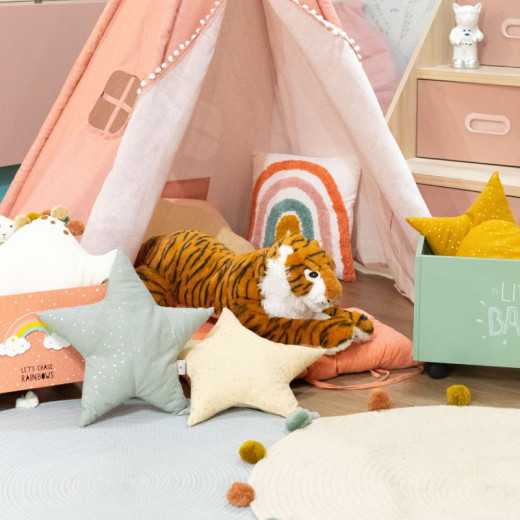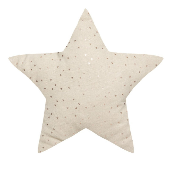Cojín infantil en forma de estrella con detalles plateados. El complemento ideal para una habitación infantil o juvenil.