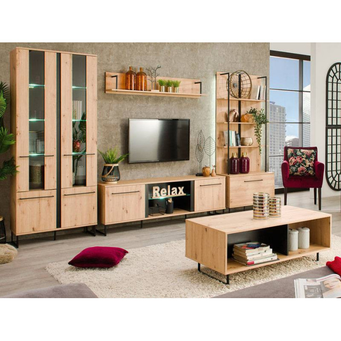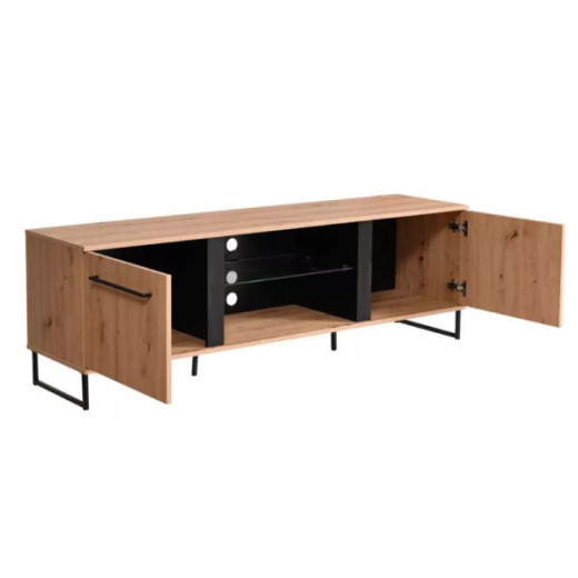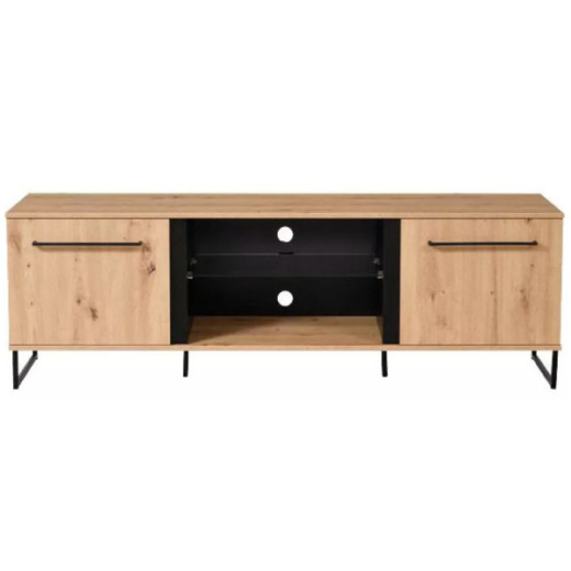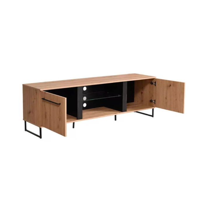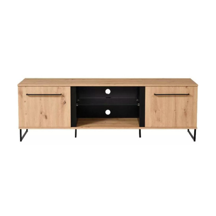 Mesa de televisión en color roble artisan y negro. Medidas 170,5 x 42 x 54 cm de alto.