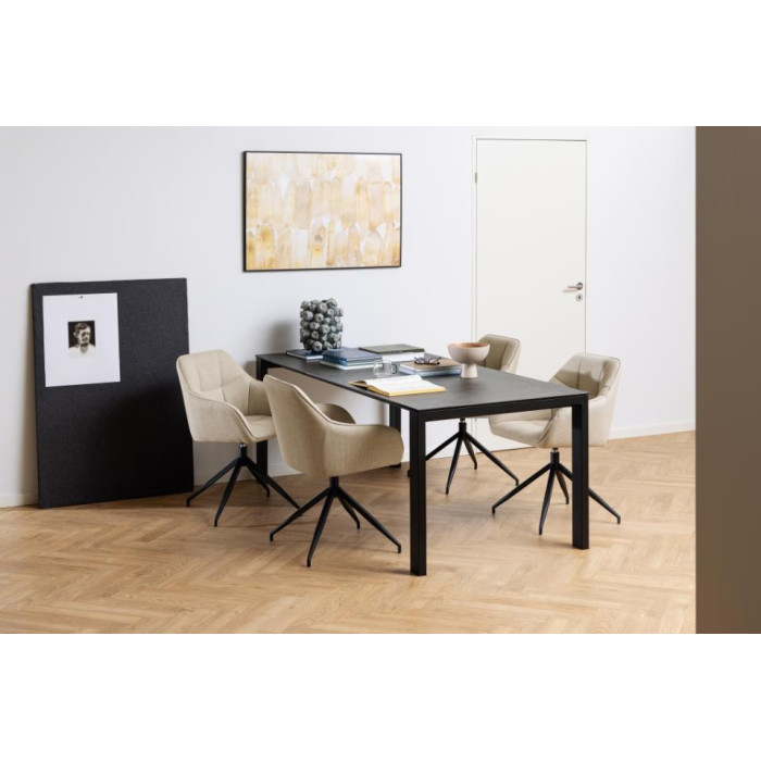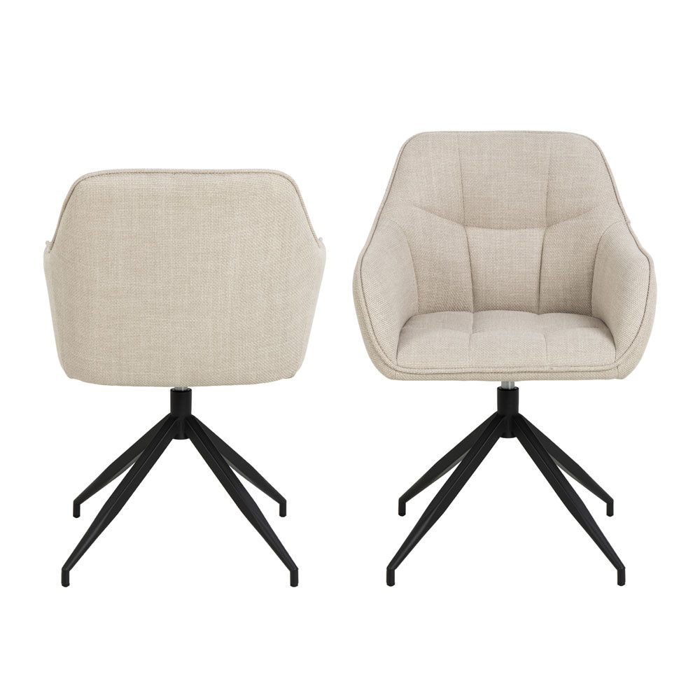 Silla de comedor giratoria, con reposabrazos tapizada en color crudo, respaldo capitoné.