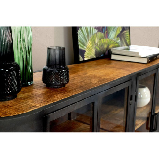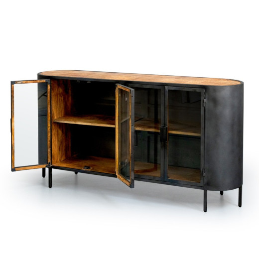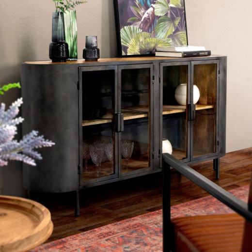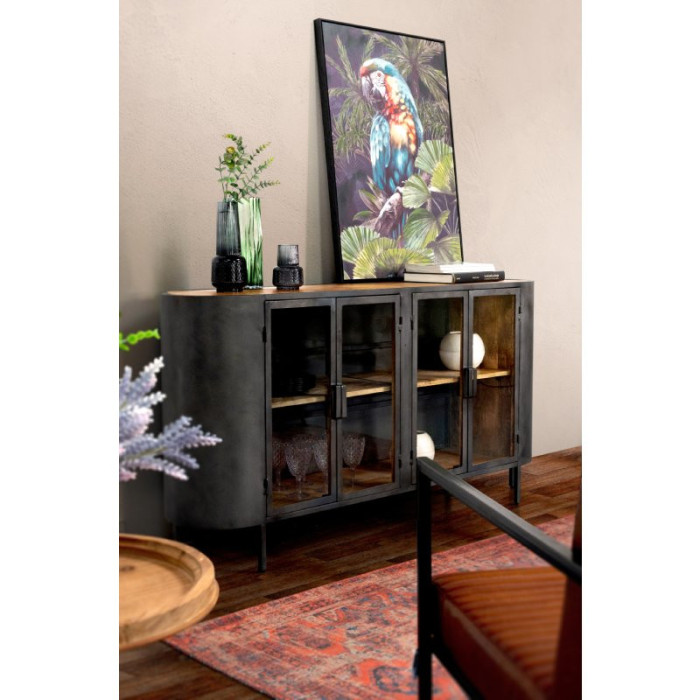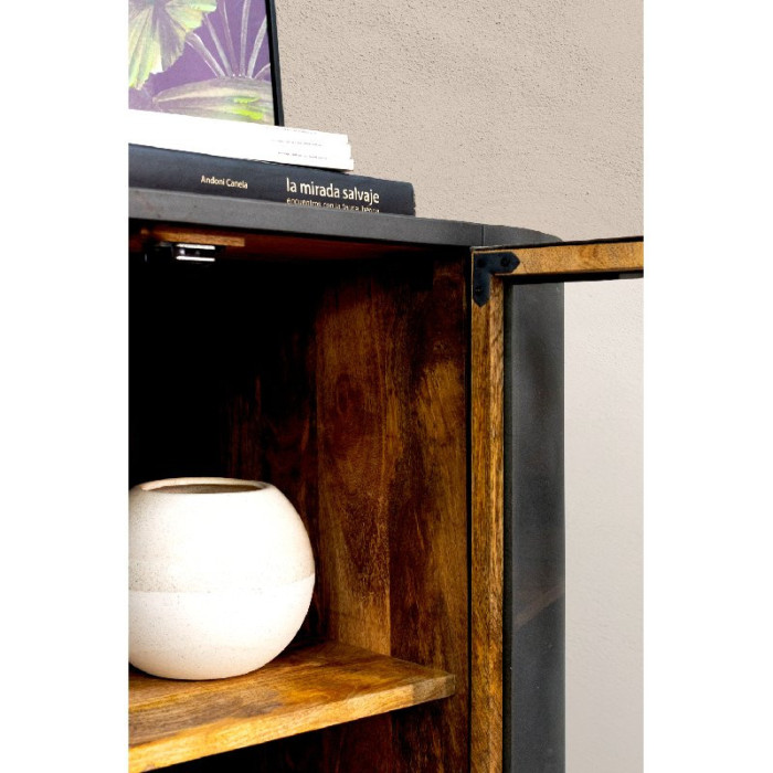 Descubre el aparador CANTINA, un mueble muy especial en madera de mango exótica, combinada con hierro rústico negro.