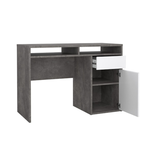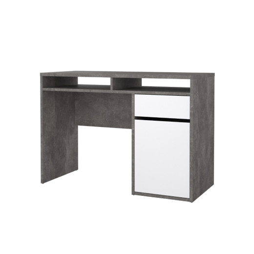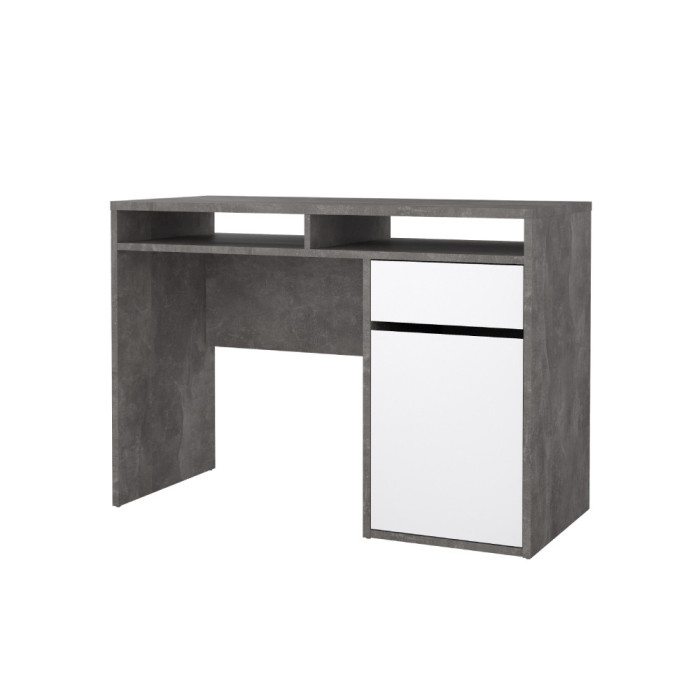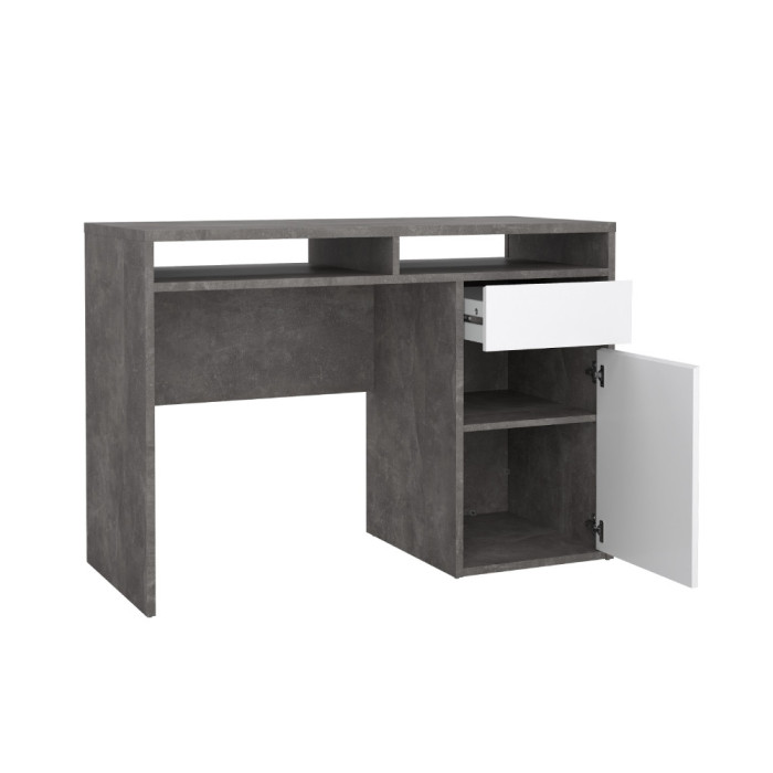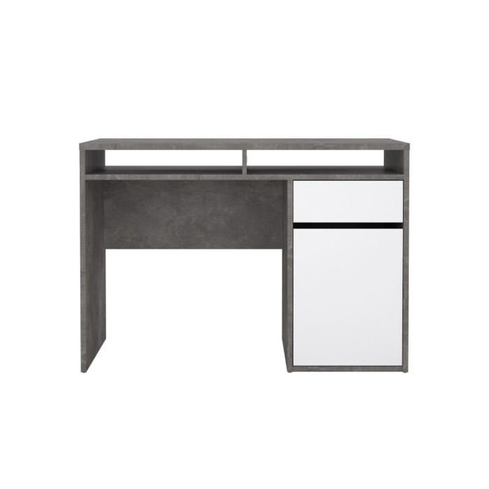 Mesa de estudio 1 puerta de apertura a derecha y 2 huecos, acabado en color oxidocombinado con blanco brillo.