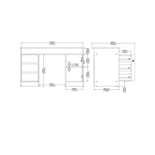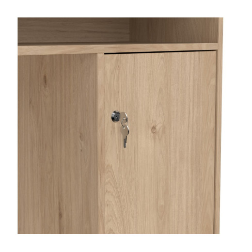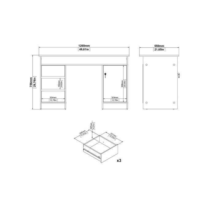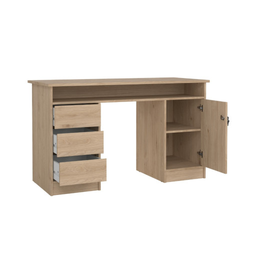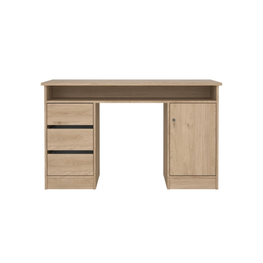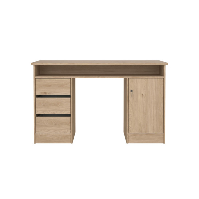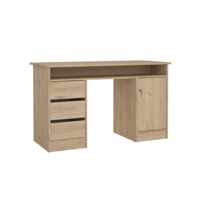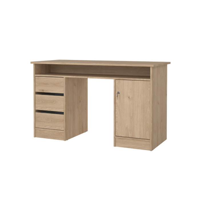 Mesa de estudio hueco superior, cajonera izquierda y puerta dedecha con cierre de llave, acabado en varios colore a elegir.