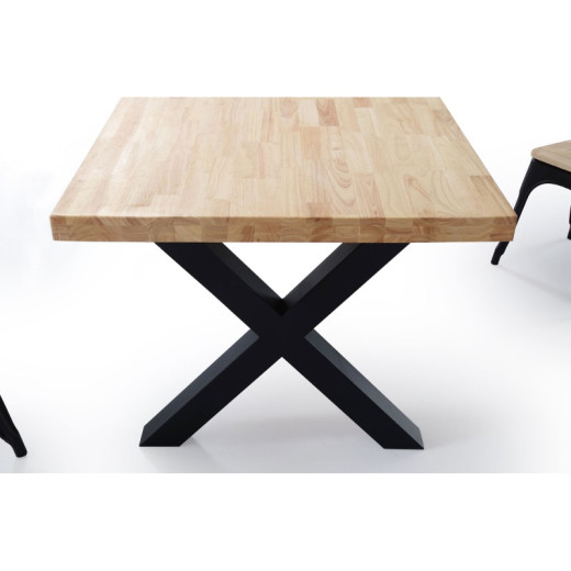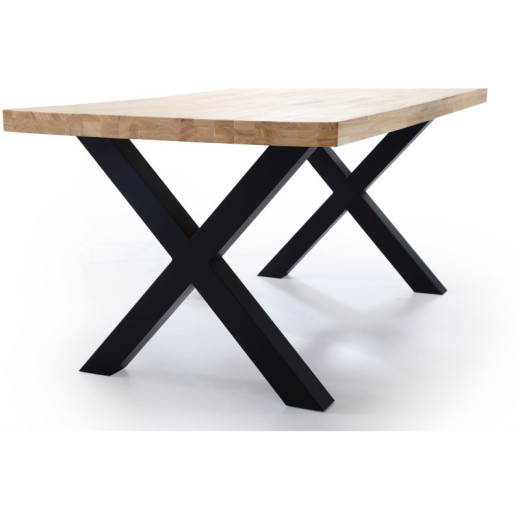 - Patas metálicas negras en forma de X de 80x80 cm de grosor.