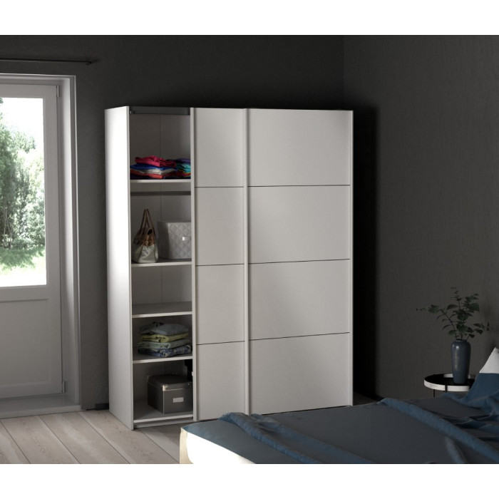 El armario TOSCANA, dispone de dos puertas correderas con terminación en panel japones. Este sistema optimiza al máximo el espacio puesto que las puertas no necesitan espacio para abrirse y su interior ofrece una gran amplitud para almacenaje.