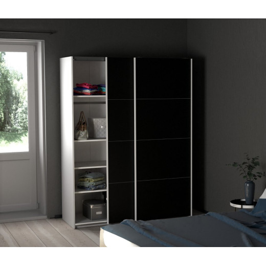 El armario TOSCANA, dispone de dos puertas correderas con terminación en panel japones. Este sistema optimiza al máximo el espacio puesto que las puertas no necesitan espacio para abrirse y su interior ofrece una gran amplitud para almacenaje.
