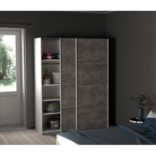El armario TOSCANA, dispone de dos puertas correderas con terminación en panel japones. Este sistema optimiza al máximo el espacio puesto que las puertas no necesitan espacio para abrirse y su interior ofrece una gran amplitud para almacenaje.