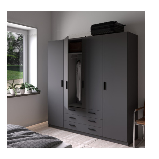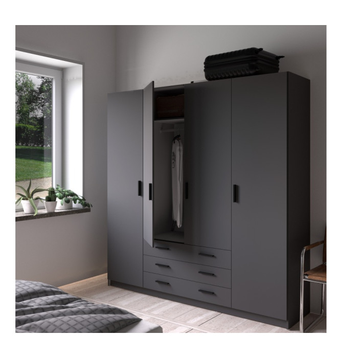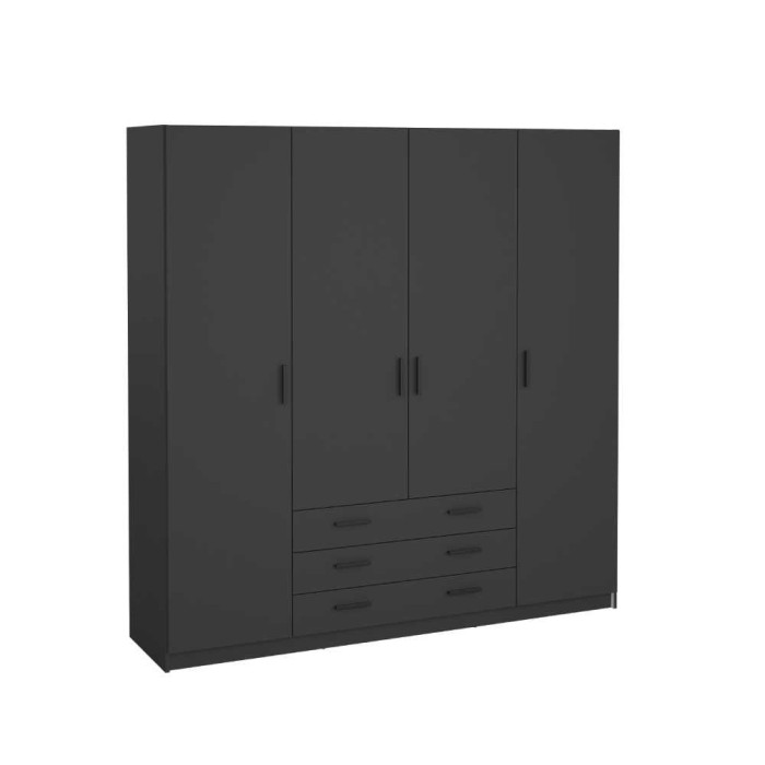Armario de 4 puertas batientes y 3 cajones acabado en laminado natural en varioos colores a elegir.