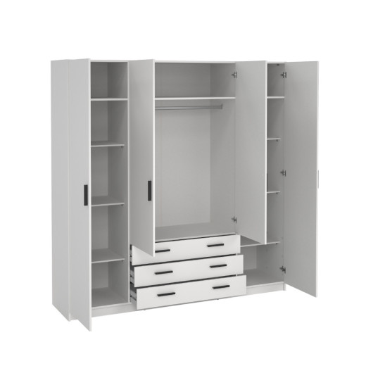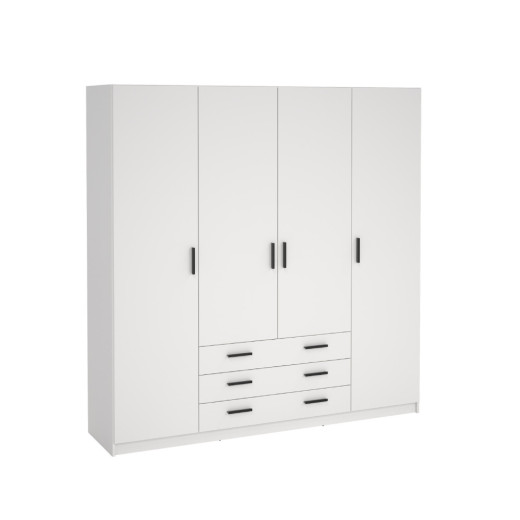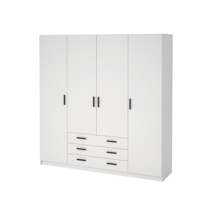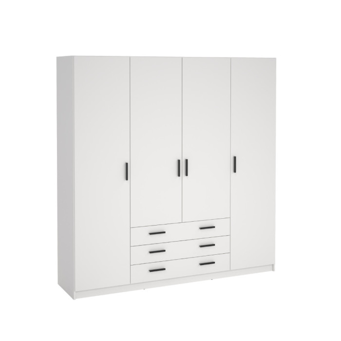 Armario de 4 puertas batientes y 3 cajones acabado en laminado natural en varioos colores a elegir.