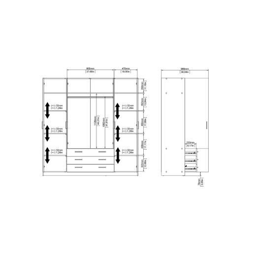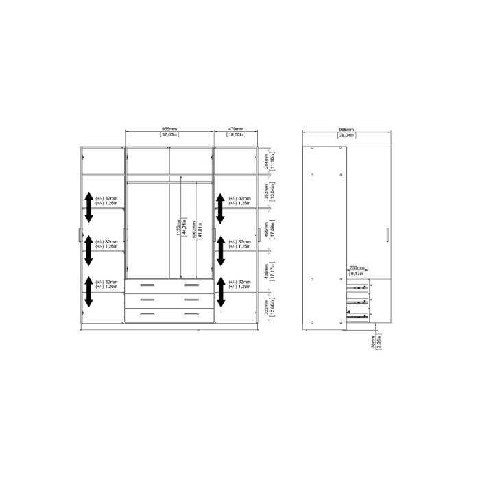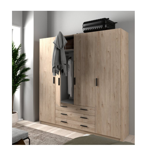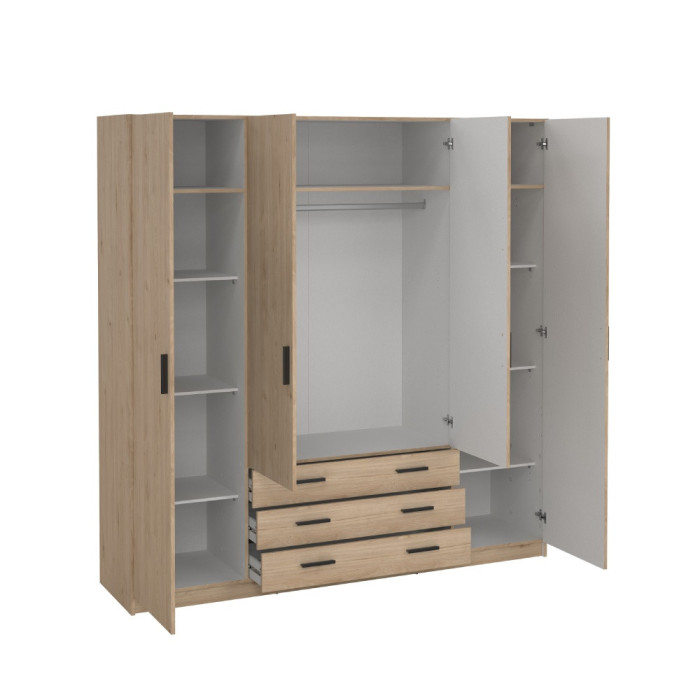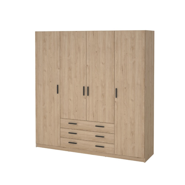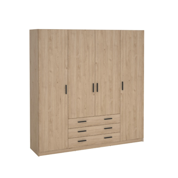 Armario de 4 puertas batientes y 3 cajones acabado en laminado natural en varioos colores a elegir.