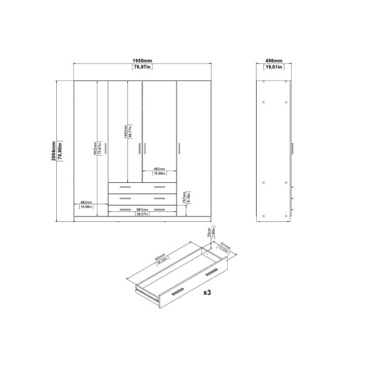 - 195,5 x 49,6 X 200,4 cm de altura.